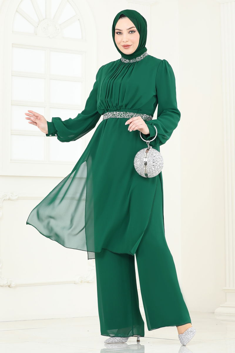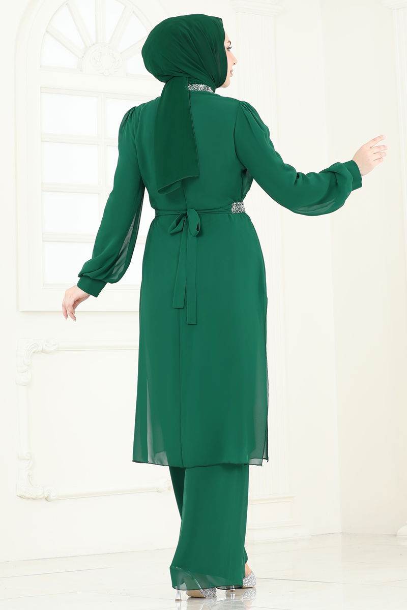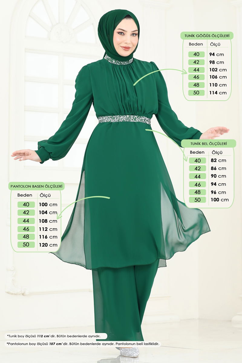 المنتج لديه ياقة بيضوية. البلوز تحتوي على فتحة. مبطنة. المنتج به سحاب في جزء من الخلف. يتم لصق الحجارة. الحزام متضمن، ،يمكن استخدامها حسب الرغبة خصر البنطال مرن. أزرار الكفة نشطة. قد يكون هناك اختلاف في الدرجة اللونية في المنتج بسبب التقاط الصور الفوتوغرافية.