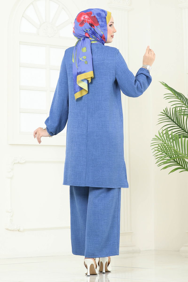 يتم ارتداء المنتج على الرأس. يوجد زر يمكن استخدامه من الخلف. المنتج لديه ياقة دائرية. البلوز تحتوي على فتحة. غير مبطنة. يتم لصق الحجارة. خصر البنطال مرن. السوار مطاطي. قد يكون هناك اختلاف في الدرجة اللونية في المنتج بسبب التقاط الصور الفوتوغرافية.