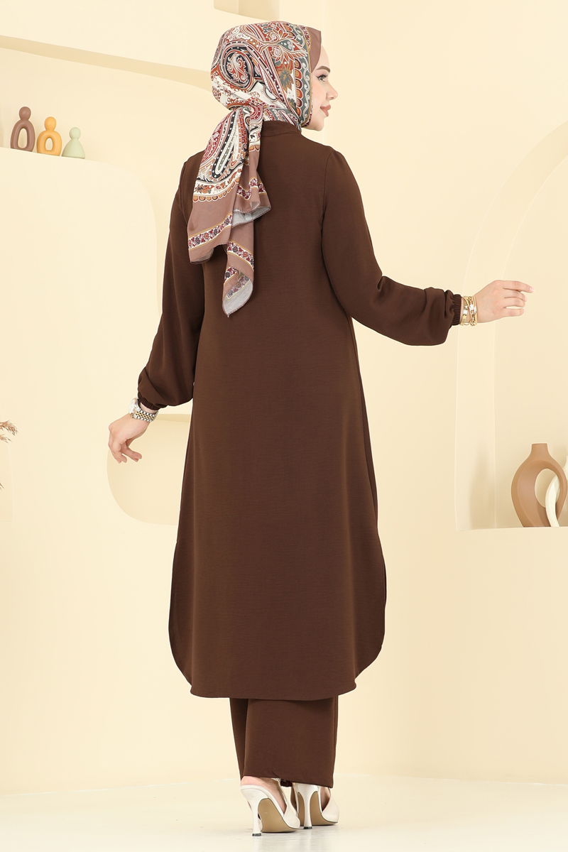 Product Feature : It is a new season hijab fashion product. The product has a Half Judge collar. The product has From the front buttons. The tunic has a side slash.. Unlined. The stones are glued. The waist of the trousers is elastic. The cuff is rubberized. There may be a tonal difference in the product due to concept photo shoots.