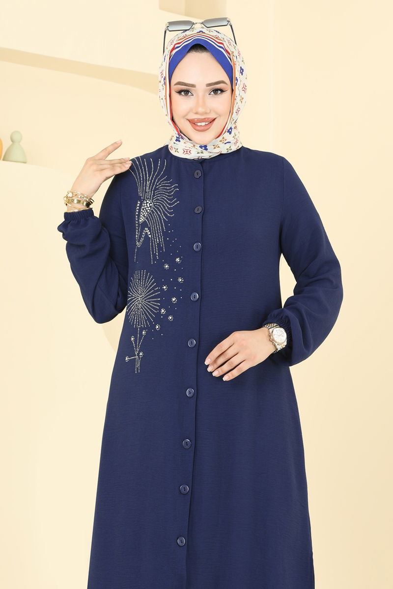 Product Feature : It is a new season hijab fashion product. The product has a Half Judge collar. The product has From the front buttons. The tunic has a side slash.. Unlined. The stones are glued. The waist of the trousers is elastic. The cuff is rubberized. There may be a tonal difference in the product due to concept photo shoots.