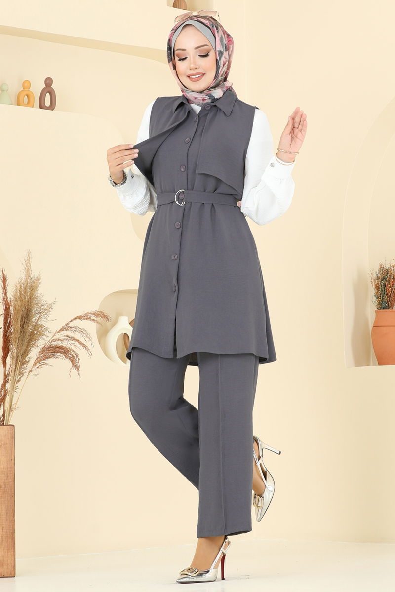المنتج لديه ياقة القميص. المنتج به أزرار من الأمام. غير مبطنة. الحزام متضمن، ،يمكن استخدامها حسب الرغبة خصر البنطال مرن. أزرار الكفة نشطة. قد يكون هناك اختلاف في الدرجة اللونية في المنتج بسبب التقاط الصور الفوتوغرافية.