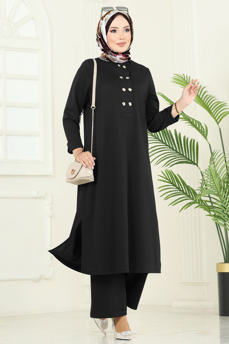 Product Feature : It is a new season hijab fashion product. The product has a Cycling collar. The tunic has a side slash.. Unlined. Buttons are accessories. The waist of the trousers is elastic. There may be a tonal difference in the product due to concept photo shoots.