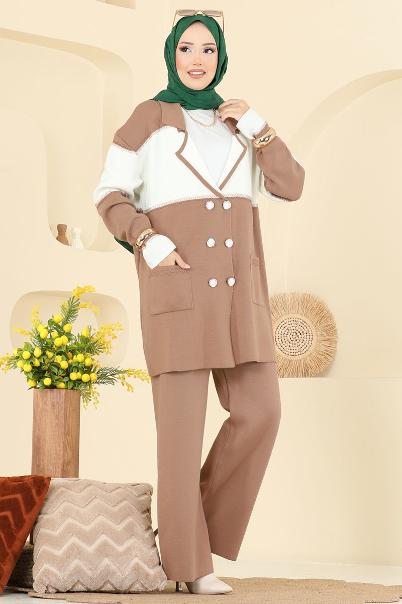 Product Feature : It is a new season hijab fashion product. The product has a Double-breasted collar. The product has half front buttons. Pattern differences may be seen in button details. Blouse is not included. Sample combination is made with the blouse to show the intended use of the product. There is a pocket on the tunic. Pants have a half elastic waist. There may be a tonal difference in the product due to concept photo shoots.