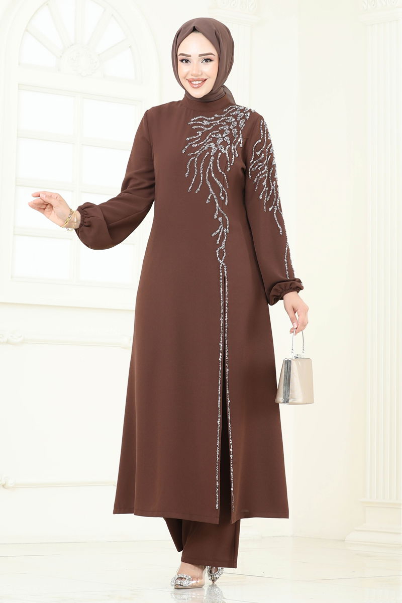 يوجد سحاب للإغلاق في الخلف. المنتج لديه ياقة نصف بيضوية. البلوز تحتوي على فتحة. غير مبطنة.. المنتج به سحاب في جزء من الخلف. يتم لصق الحجارة. خصر البنطال مرن. السوار مطاطي. قد يكون هناك اختلاف في الدرجة اللونية في المنتج بسبب التقاط الصور الفوتوغرافية.