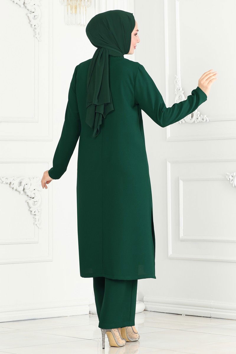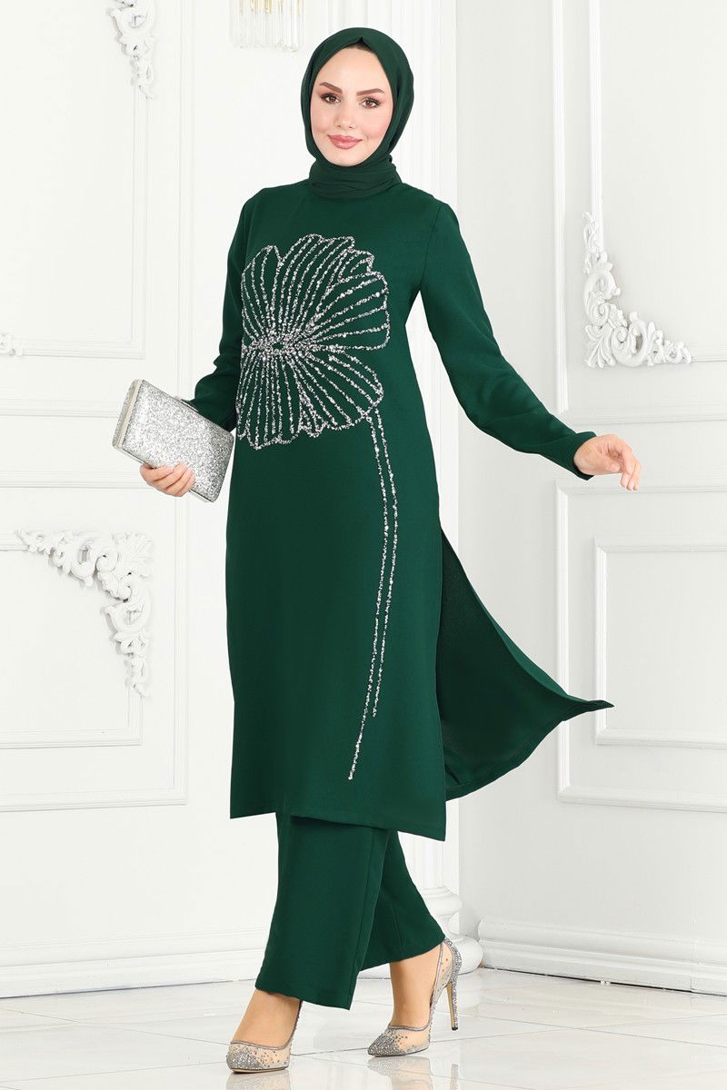 المنتج لديه ياقة بيضوية. البلوز تحتوي على فتحة. غير مبطنة.. المنتج به سحاب في جزء من الخلف. يتم لصق الحجارة. خصر البنطال مرن. قد يكون هناك اختلاف في الدرجة اللونية في المنتج بسبب التقاط الصور الفوتوغرافية.