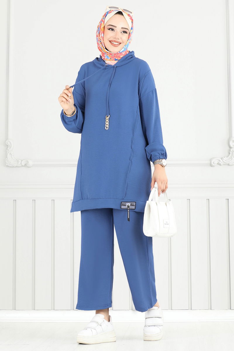 Product Feature : It is a new season hijab fashion product. The product is worn on the head. The product has a Hooded collar. The tunic has a side slash.. Unlined. The hood is sewn to the product. The coat of arms detail is sewn. Metal anti-tarnish accessory. The waist of the trousers is elastic. The cuff is rubberized. There may be a tonal difference in the product due to concept photo shoots.