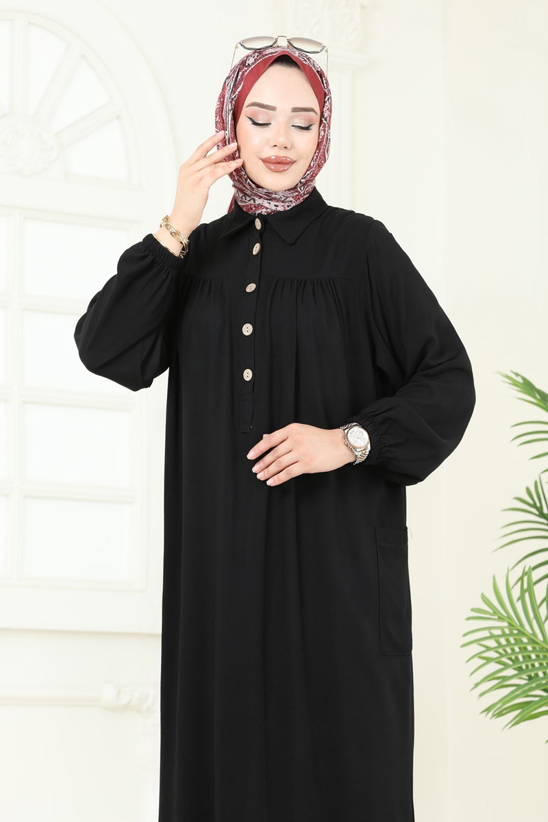 Product Feature : It is a new season hijab fashion product. The product has a Shirt collar. The product has half front buttons. The tunic has a side slash.. Unlined. There is a pocket on the tunic. The waist of the trousers is elastic. The cuff is rubberized. There may be a tonal difference in the product due to concept photo shoots.