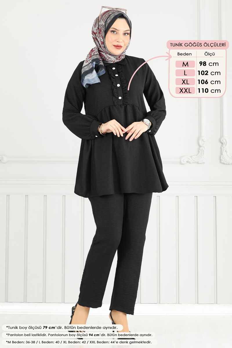 بلوز مقاسات الحجم (سم)الحجم الصدر الطول M 98 79 L 102 79 XL 106 79 XXL 110 79 بنطلون مقاسات الحجم (سم)الحجم الطول M 94 L 94 XL 94 XXL 94 الوزن(كجم):0.57 -