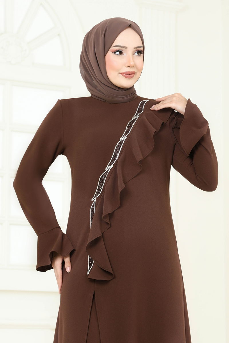 Product Feature : It is a new season hijab fashion product. The product has a Cycling collar. It has a slash.. Unlined. The product has a zipper at the from the back part. The stones are glued. The waist of the trousers is elastic. There may be a tonal difference in the product due to concept photo shoots.