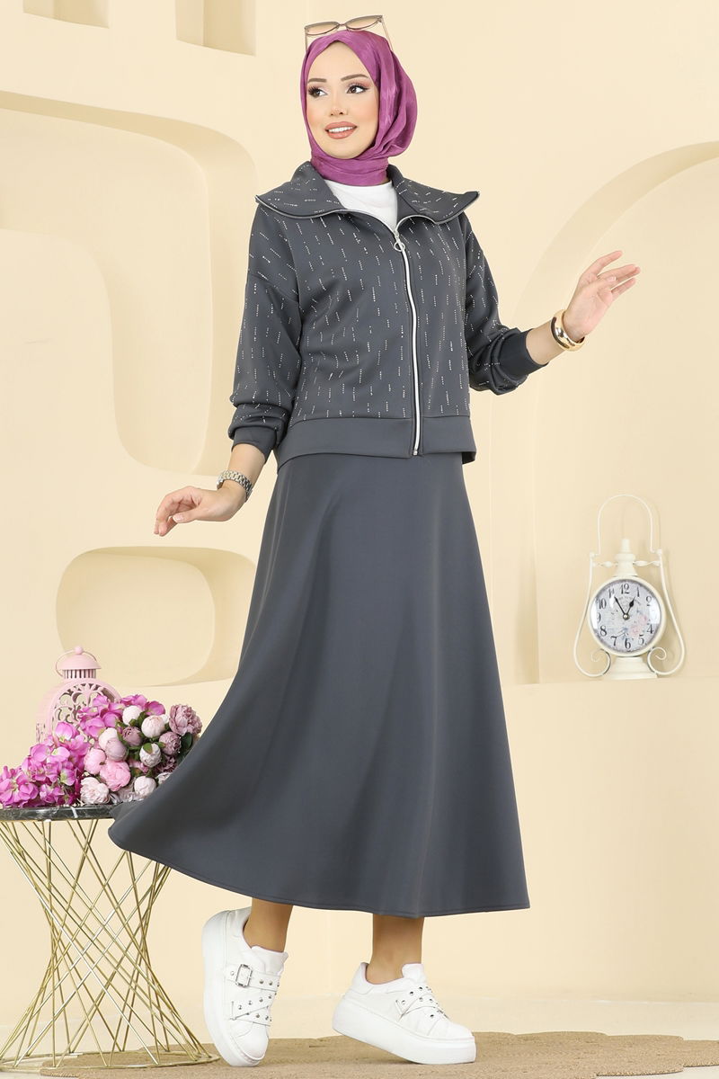 المنتج لديه ياقة مستقيم. غير مبطنة. المنتج به سحاب في جزء من الأمام. يتم لصق الحجارة. .خصر التنورة مرن قد يكون هناك اختلاف في الدرجة اللونية في المنتج بسبب التقاط الصور الفوتوغرافية.