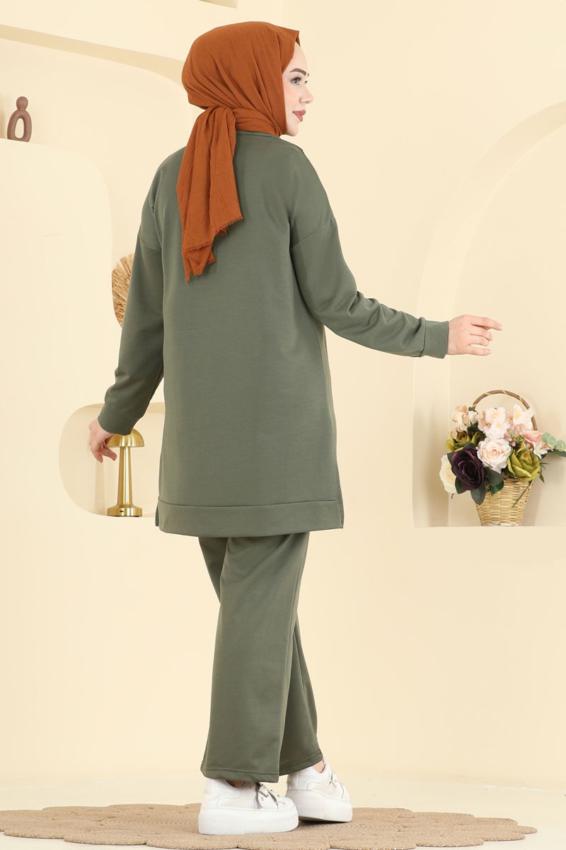 This stylish Printed Detail Two-ply Suit is a modest ensemble especially designed for comfort across all seasons. Recommended to be washed gently at 30 degrees, this garment is made from durable two-ply fabric. The set includes an elasticated waist pant and a crew neck tunic, both embellished with modern print details. The product worn by the model is in size 38-40.