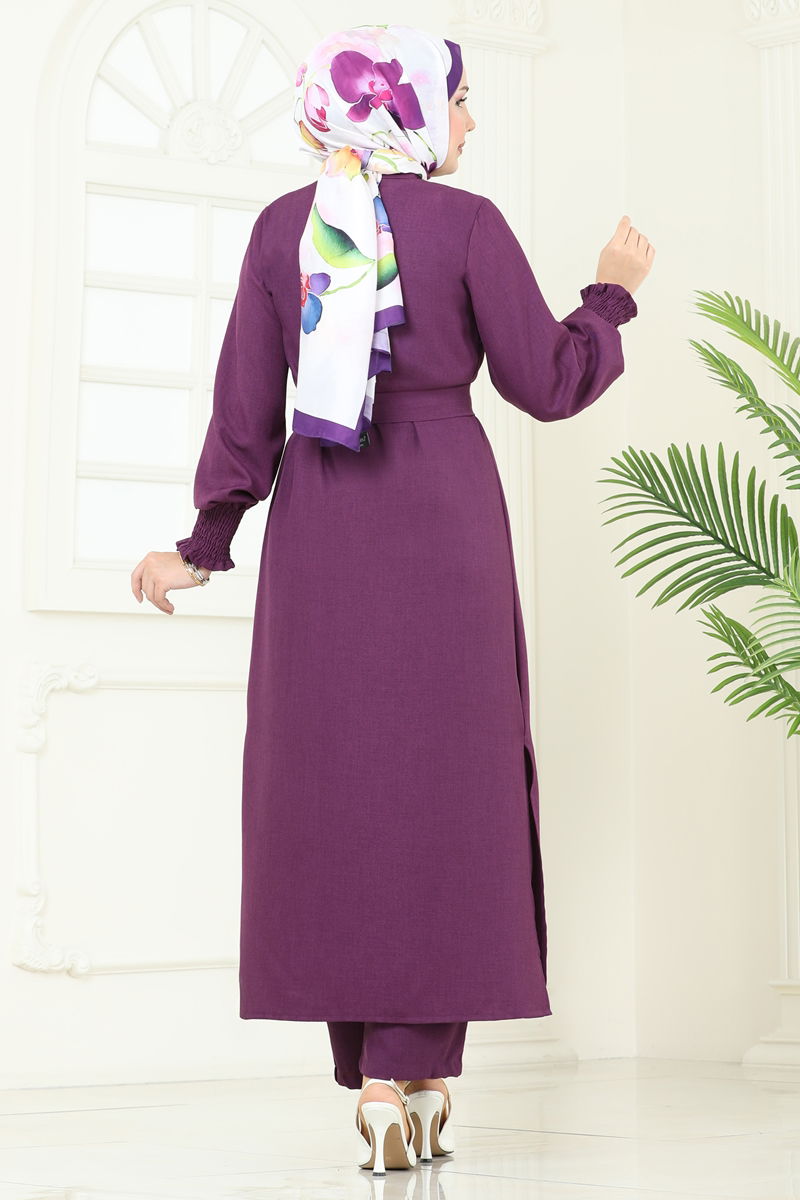المنتج لديه ياقة بيضوية. المنتج به أزرار من الأمام. البلوز تحتوي على فتحة. غير مبطنة. الحزام متضمن، ،يمكن استخدامها حسب الرغبة البلوزة غير متضمنة. صُنعت عينة من المجموعة مع البلوزة لإظهار الاستخدام المقصود للمنتج. الملحقات غير متضمنة. خصر البنطال مرن. السوار مطاطي. قد يكون هناك اختلاف في الدرجة اللونية في المنتج بسبب التقاط الصور الفوتوغرافية.