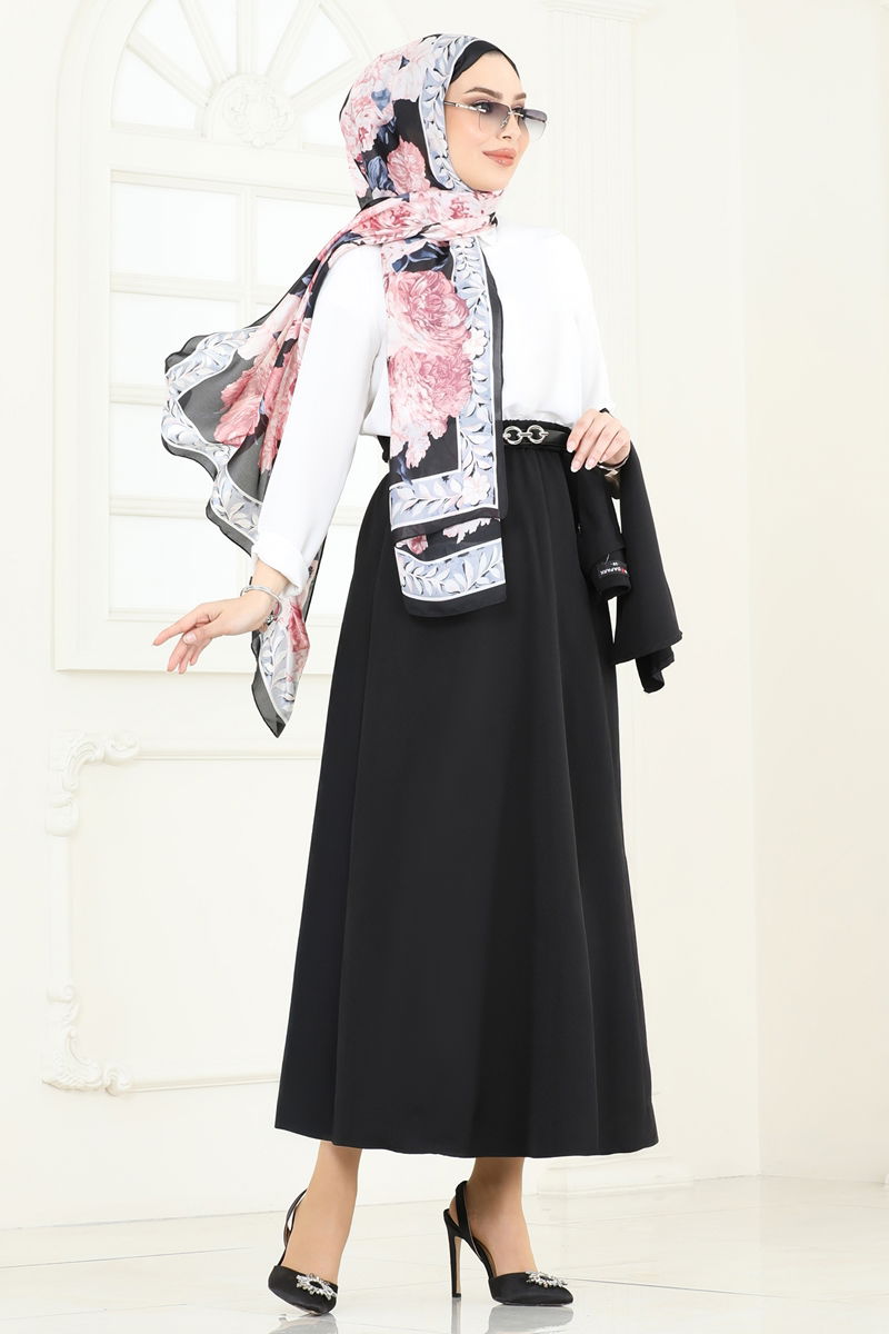 Product Feature : It is a new season hijab fashion product. The product has a Jacket collar. The product has From the front buttons. Unlined. Belt included, optional not available. Blouse is not included. Sample combination is made with the blouse to show the intended use of the product. The skirt waist is elastic. There may be a tonal difference in the product due to concept photo shoots.