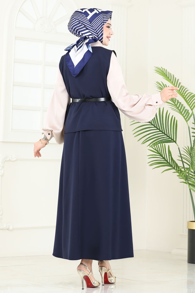 Product Feature : It is a new season hijab fashion product. The product has a Jacket collar. The product has From the front buttons. Unlined. Belt included, optional not available. Blouse is not included. Sample combination is made with the blouse to show the intended use of the product. The skirt waist is elastic. There may be a tonal difference in the product due to concept photo shoots.