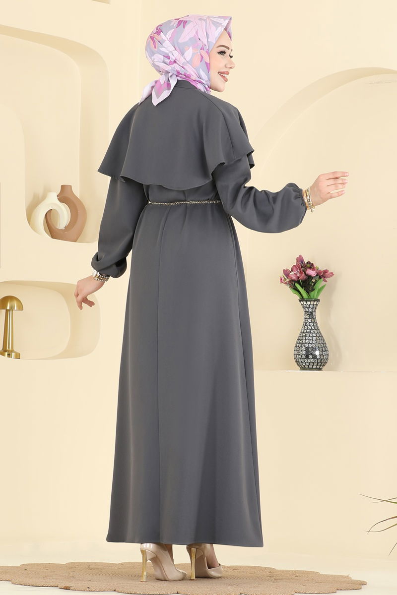 المنتج لديه ياقة دائرية. غير مبطنة. المنتج به سحاب في جزء من الخلف. المنتج يحتوي على حزام خصر مُخاط. العباءة متضمنة، اختيارية لا يجب استخدامها. الحزام متضمن، ،يمكن استخدامها حسب الرغبة السوار مطاطي. قد يكون هناك اختلاف في الدرجة اللونية في المنتج بسبب التقاط الصور الفوتوغرافية.