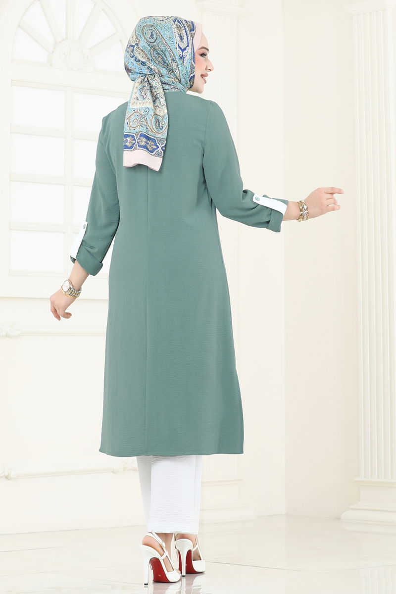 Product Feature : It is a new season hijab fashion product. It has a button that can be used from the back. The product has a Cycling collar. The tunic has a side slash.. Unlined. Accessories are not included. The waist of the trousers is elastic. Cuff buttons are active. There may be a tonal difference in the product due to concept photo shoots.