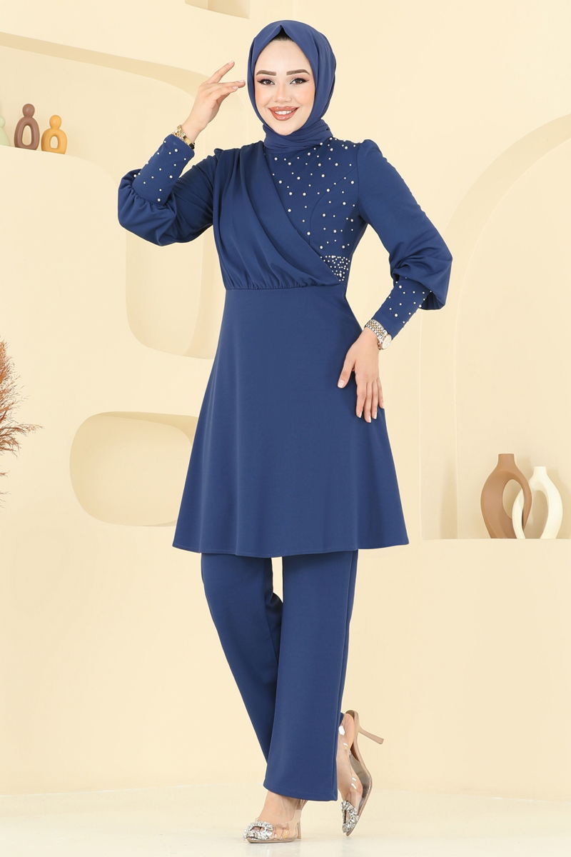 المنتج لديه ياقة دائرية. غير مبطنة. المنتج به سحاب في جزء من الخلف. تم اضافة اللؤلؤ بطريقة التعبئة المنتج يحتوي على حزام خصر مُخاط. خصر البنطال مرن. قد يكون هناك اختلاف في الدرجة اللونية في المنتج بسبب التقاط الصور الفوتوغرافية.
