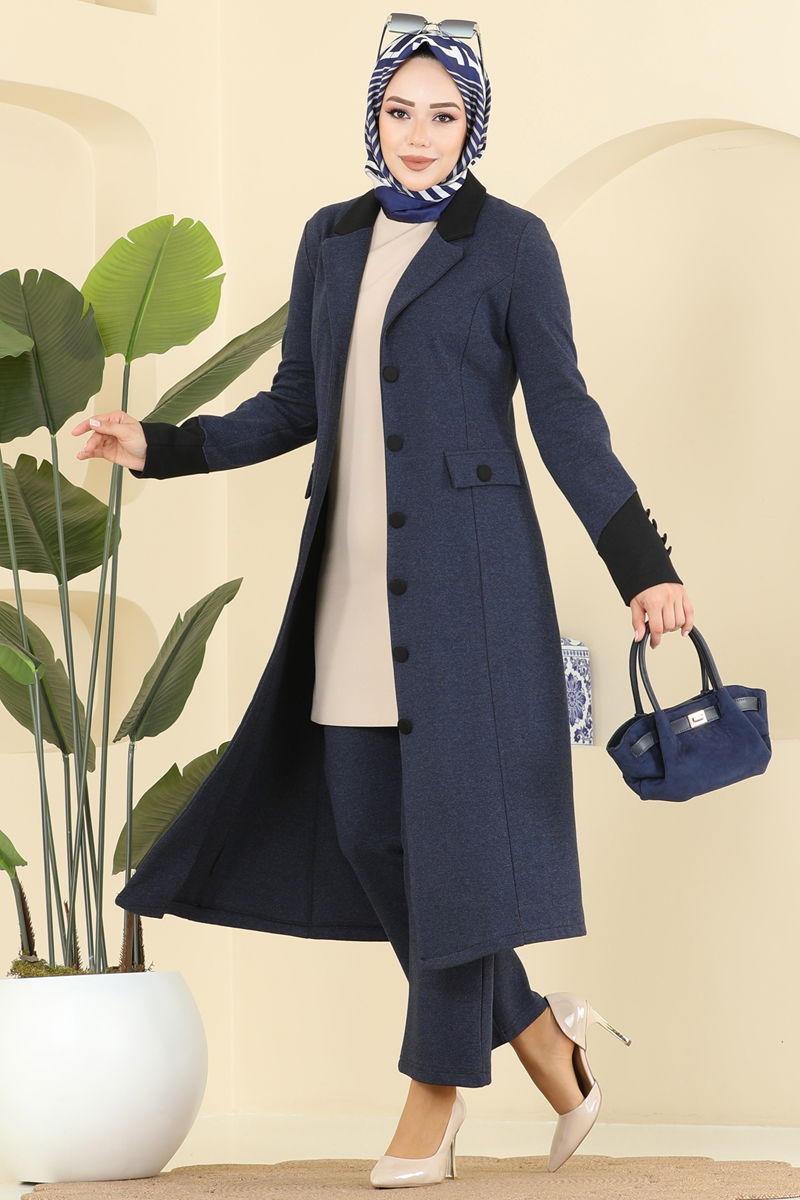 المنتج لديه ياقة مفتوحة. المنتج به أزرار من الأمام. غير مبطنة. الملحقات غير متضمنة. تفاصيل الجيب عبارة عن إكسسوارات. خصر البنطال مرن. أزرار الأكمام إكسسوارات. قد يكون هناك اختلاف في الدرجة اللونية في المنتج بسبب التقاط الصور الفوتوغرافية.
