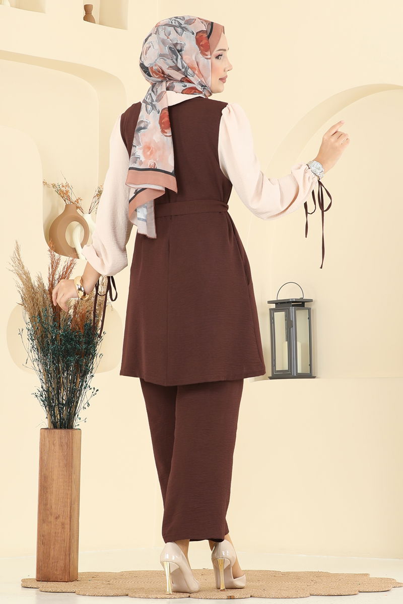 المنتج لديه ياقة القميص. غير مبطنة. المنتج به سحاب في جزء من الخلف. يحتوي المنتج على ياقة قميص. وهي مخيطة على السترة. الحزام متضمن، ،يمكن استخدامها حسب الرغبة خصر البنطال مرن. مع حزام بأربطة. قد يكون هناك اختلاف في الدرجة اللونية في المنتج بسبب التقاط الصور الفوتوغرافية.