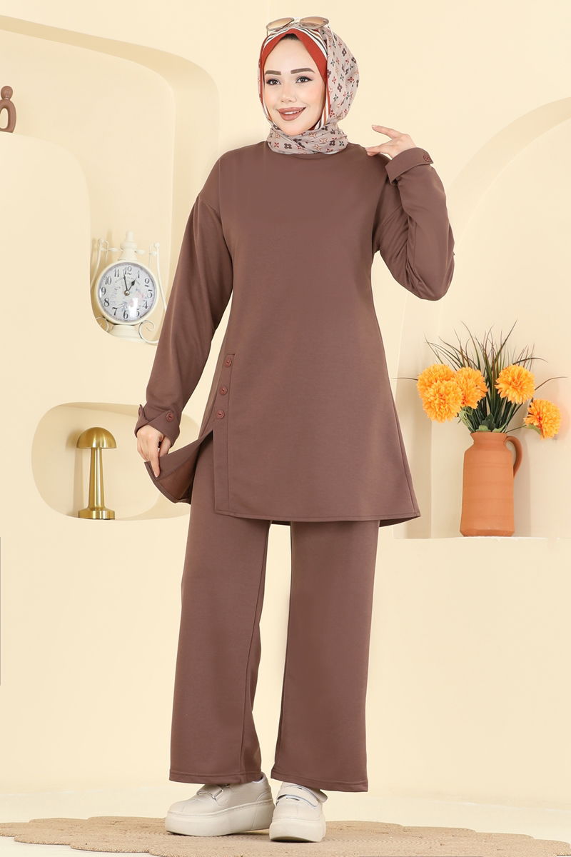 يوجد زر يمكن استخدامه من الخلف. المنتج لديه ياقة دائرية. البلوز تحتوي على فتحة. غير مبطنة. خصر البنطال مرن. أزرار الأكمام إكسسوارات. قد يكون هناك اختلاف في الدرجة اللونية في المنتج بسبب التقاط الصور الفوتوغرافية.