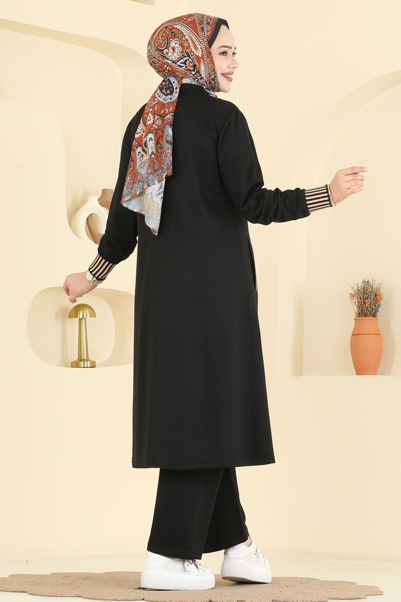 The Biye Detail Two Thread Suit is a special hijab suit that can be comfortably used in all seasons. It remains like new for a long time with its features that can be washed at 30 degrees in gentle wash mode. It offers comfort with its semi-standing collar design and lining-free structure. The product is zippered from the front and provides easy use. The pants unit has an elastic waist design and has functional pockets in both the jacket and the pants. Stylish and functional design, ready to accompany you at any moment of the day.
