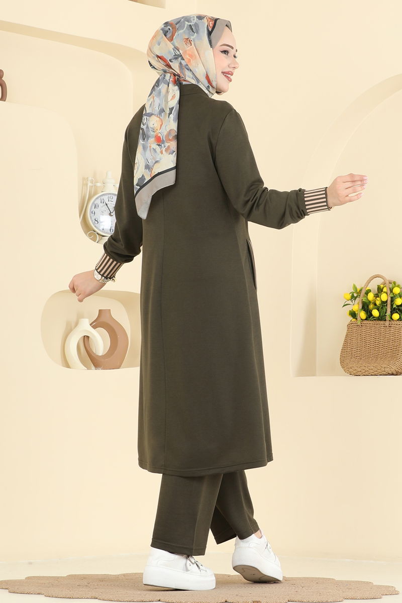 The Biye Detail Two Thread Suit is a special hijab suit that can be comfortably used in all seasons. It remains like new for a long time with its features that can be washed at 30 degrees in gentle wash mode. It offers comfort with its semi-standing collar design and lining-free structure. The product is zippered from the front and provides easy use. The pants unit has an elastic waist design and has functional pockets in both the jacket and the pants. Stylish and functional design, ready to accompany you at any moment of the day.