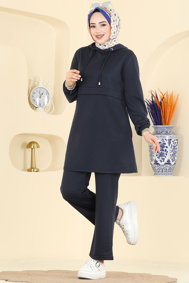 Product Feature : It is a new season hijab fashion product. The neck drawstring is active. The product has a Hooded collar. The hood is sewn to the product. A hidden pocket is available. The waist of the trousers is elastic. The cuff is rubberized. There may be a tonal difference in the product due to concept photo shoots.