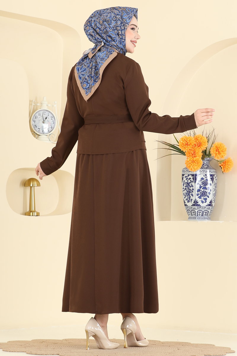 Featuring a chic and modern design, the Button Accessorized Dabıl Set has been crafted with your comfort in mind for all seasons. Made from durable Dabıl fabric, this modest wear can be washed at 30 degrees thanks to its delicate nature. Its crew neck and unlined design offer comfortable wear, while the front zipper ensures practicality. Decorative buttons are added as accessories. The set is completed with a skirt featuring an elastic waist and a cardigan, enhancing your elegance. The belt, stitched at both ends with the middle left open to prevent waviness, can be optionally removed.