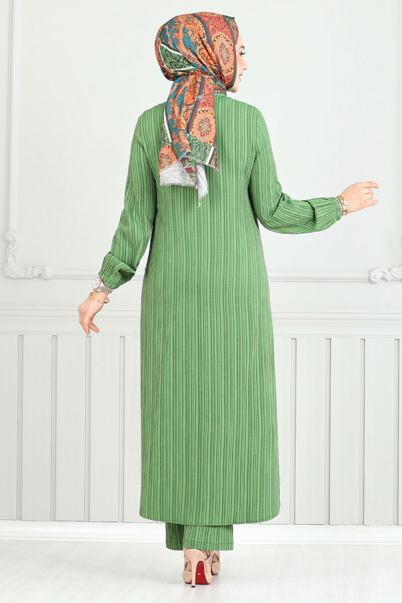 Produits comprenant un Costume Hijab avec Boutons sur le Devant et un Pantalon: Tunique et pantalon. Caractéristique du tissu: Il est fait de tissu d'écorce d'arbre. Il peut être utilisé en quatre saisons saisonnières. Caractéristique du produit: Le hijab de la nouvelle saison est un produit de mode. Le produit a un bouton caché. Il n'est pas doublé. La taille du pantalon est élastique.Il peut y avoir une différence de tonalité dans le produit en raison de séances photo conceptuelles. Lavage: IL PEUT ÊTRE LAVÉ SANS SERRER À 30 DEGRÉS.(LAVAGE DÉLICAT) (Le produit sur le modèle est de taille 38.) Notre produit de costume Hijab avec boutons sur le devant offre une élégance démodée que vous pouvez utiliser facilement en toutes saisons. Ce design spécial, qui peut être lavé à 30 degrés avec sa structure délicate, est fait de tissu d'écorce d'arbre. Ce costume, qui allie confort et esthétique avec des boutons cachés et une tunique avec des fentes sur les côtés, n'est pas doublé et le pantalon a une taille en caoutchouc. Notre produit est présenté comme un échantillon de taille 38 et offre une apparence élégante dans n'importe quel environnement.Poids(Kg):0.62