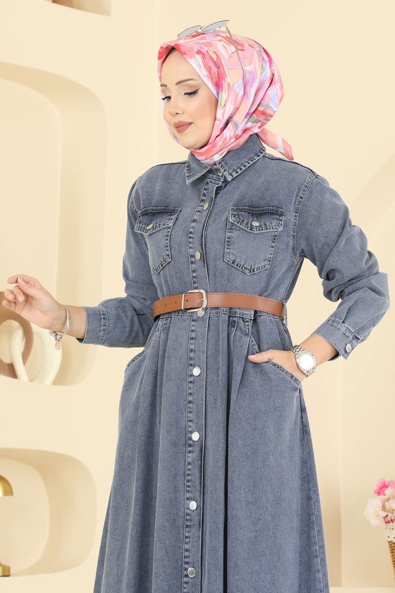 Ürün Detayları: Moda tutkunları için tasarlanmış tesettür ürünü. Gömlek yaka tasarım. Önden düğmeli kapanışa sahiptir. Astar içermemektedir. Kemer, elbise ile birlikte verilmekte ancak çıkartılabilir. Cepli yapıda. Manşet düğmeleri kullanılabilir durumdadır.Renk değişiklikleri çekim ışığına bağlı olarak farklılık gösterebilir.