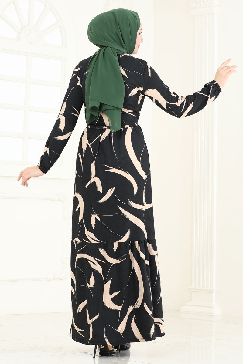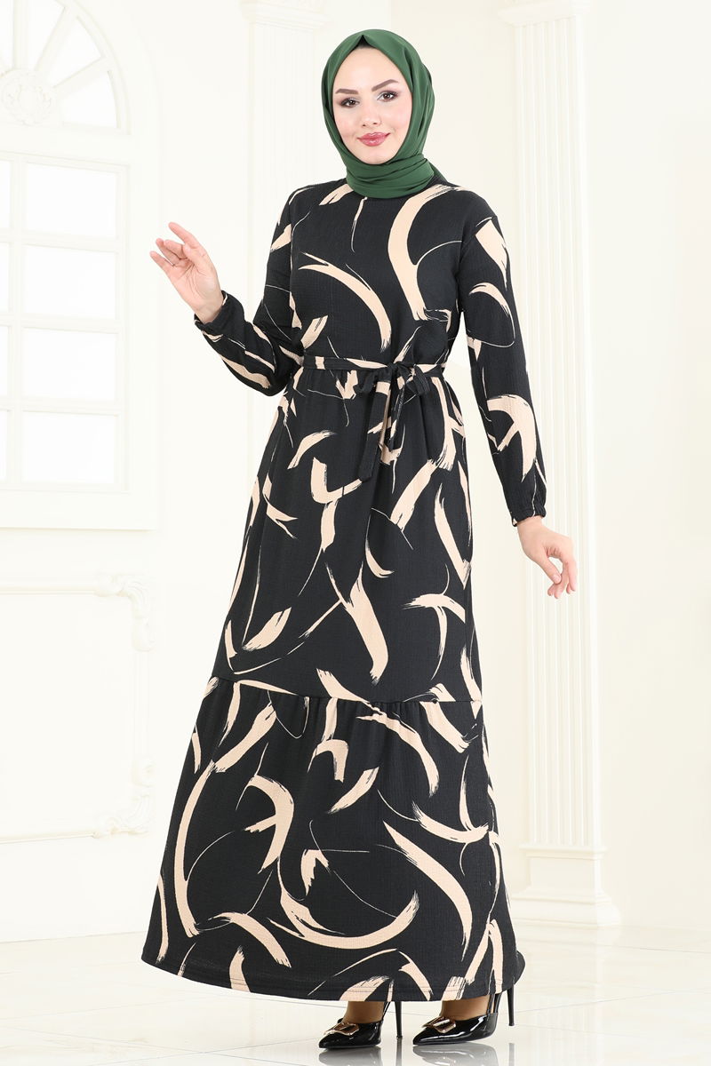 Desenli Bürümcük Elbise 5010UZ662-MS Siyah&Vizyon