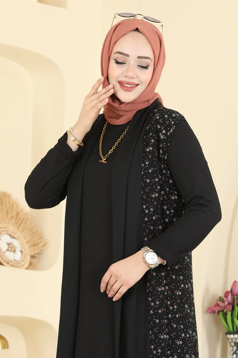 Bu etkileyici Desenli Bürümcük Yelekli Takım, dört mevsim tercih edilebilen bir tesettür takımı olarak dikkat çekiyor. 30 derecede hassas yıkama özelliği ile kolay temizlenebilen bu zarif set, özel bürümcük kumaştan tasarlanmıştır. Bisiklet yakası ve arka düğmeli tasarımı ile modern ve elverişli bir şıklık sunmaktadır. Astar içermeyen yapısıyla konforlu bir giyim imkanı tanırken, iç göstermez. Yelek ve elbise olarak hazırlanmış bu ürün, gardırobunuzun vazgeçilmez parçası olacaktır!