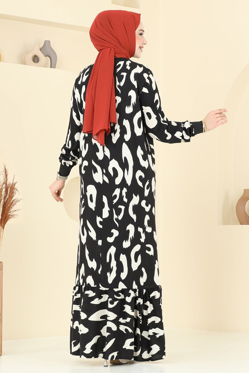 Desenli Tesettür Elbise 820OZN1046-MS Taş