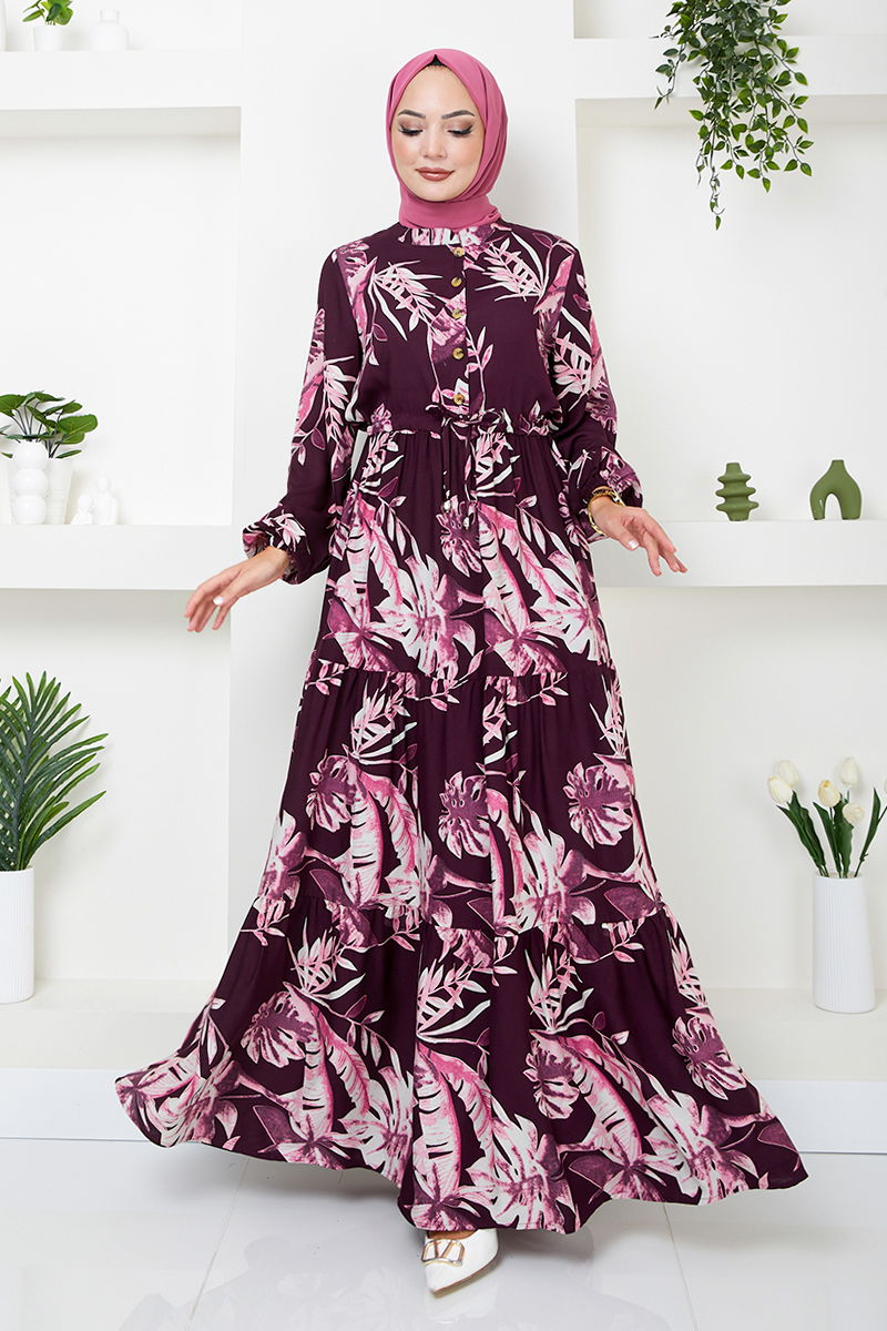 Desenli Viskon Elbise 2351BGS895-M Mürdüm