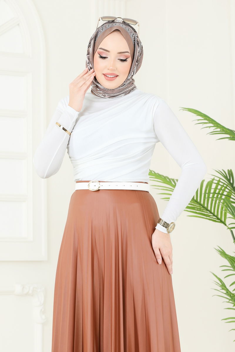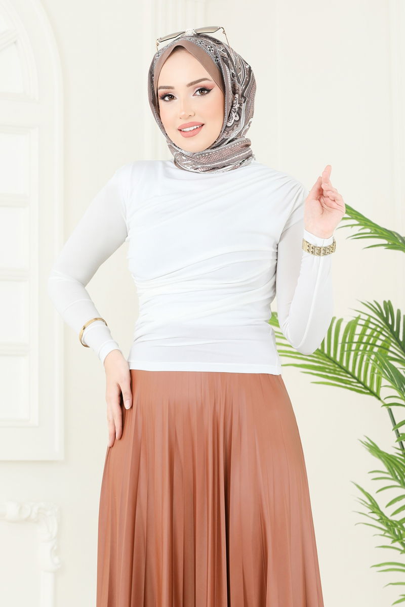 Drapeli Tesettür Bluz 4725AYD574-MS Ekru