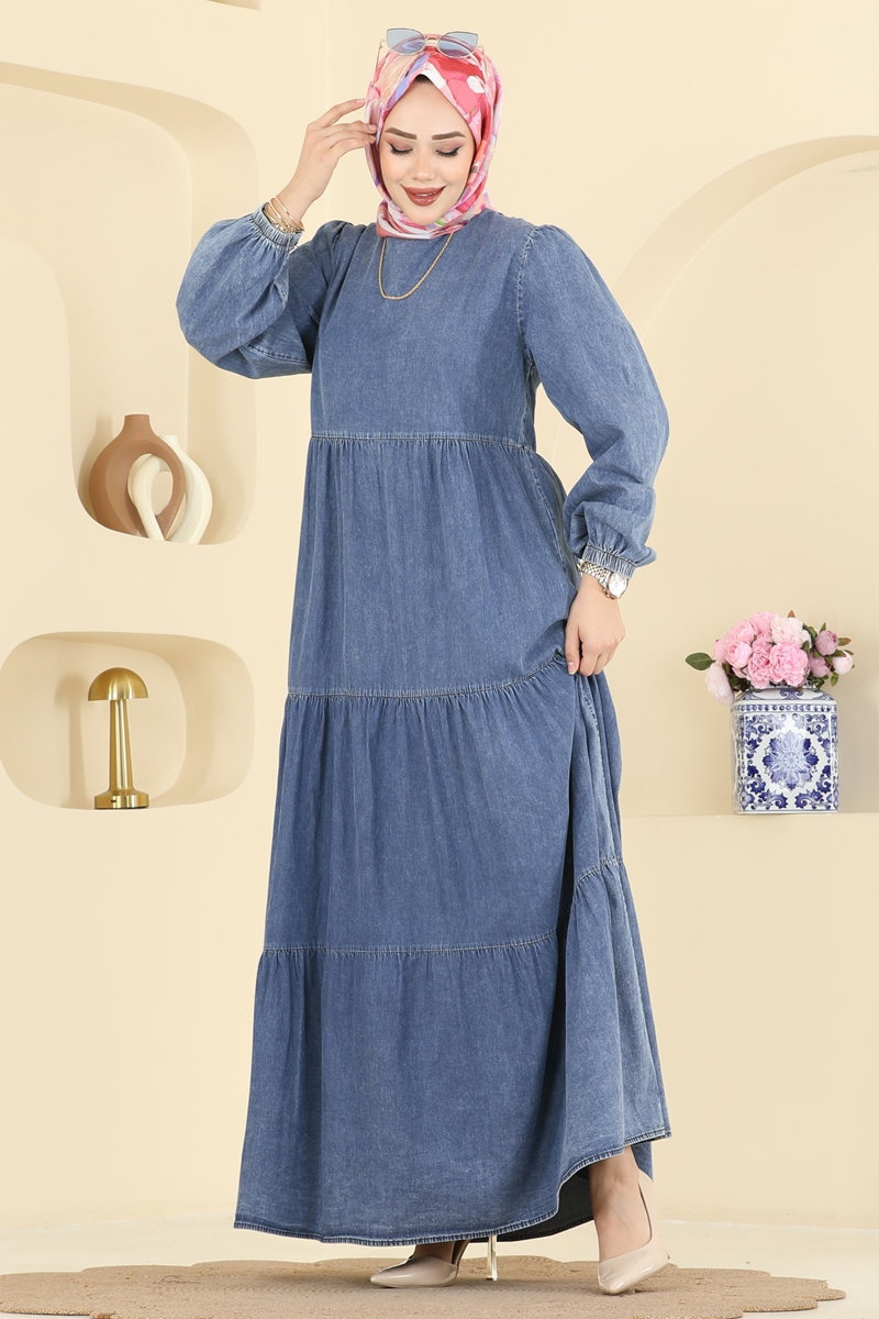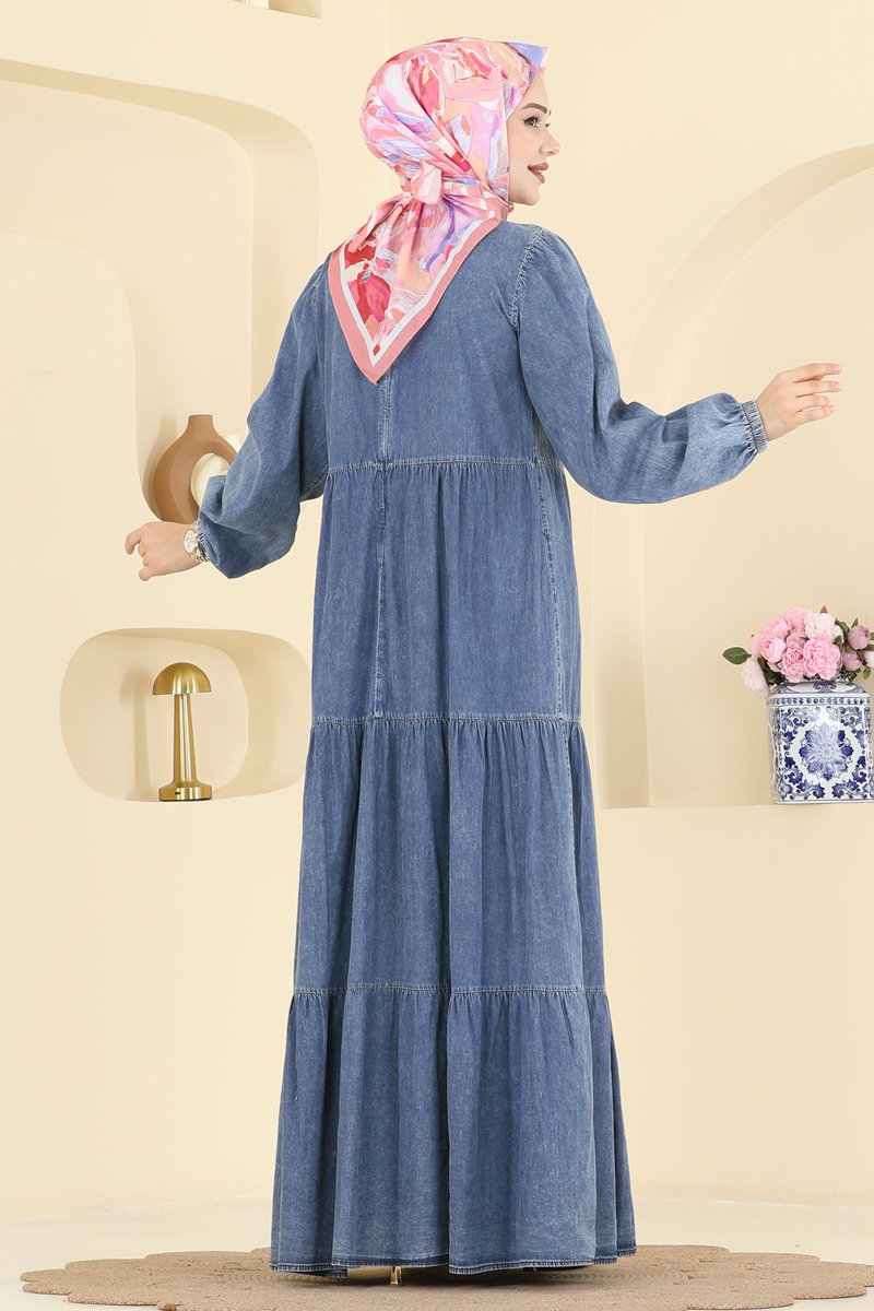 Featuring elegant and modern design, the Zippered-Back Denim Dress breathes new life into modest fashion. Suitable for all seasons, this dress can be gently washed at 30 degrees. With a crew neck and elasticated cuffs, it offers an eye-catching look. Its unlined structure provides light and comfortable wear, while the zipper at the back adds both convenience and style.
