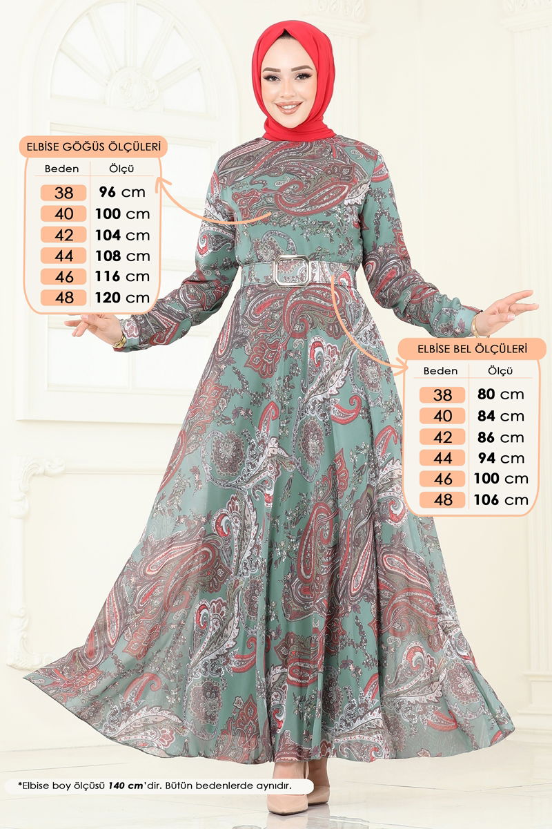 The Coated Belted Chiffon Dress is a stylish modest wear that can be comfortably worn across all seasons. It can be washed in a gentle cycle at 30 degrees Celsius. Made from chiffon fabric, this dress features a mandarin collar and is lined for added comfort. The side zipper makes it easy to wear, and it comes in a standard size 38. The belt is a significant detail that completes the elegance of the dress and can be optionally removed. It is tailored to prevent any waving at the ends while the center remains stitch-free. The cuffs are functional and add a stylish touch. The dress measurements include a length of 165 cm, a chest of 88 cm, a waist of 68 cm, hips of 99 cm, and a weight of 56 kg. This dress is suitable for special occasions or everyday wear, offering an elegant appearance.
