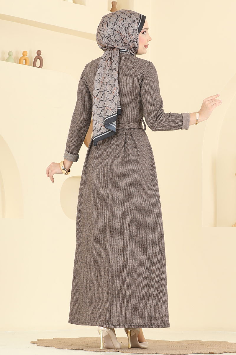 المنتج لديه ياقة دائرية. غير مبطنة. المنتج به سحاب في جزء من الخلف. المنتج يحتوي على حزام خصر مُخاط. الأزرار هي إكسسوارات. الحزام متضمن، ،يمكن استخدامها حسب الرغبة قد يكون هناك اختلاف في الدرجة اللونية في المنتج بسبب التقاط الصور الفوتوغرافية.