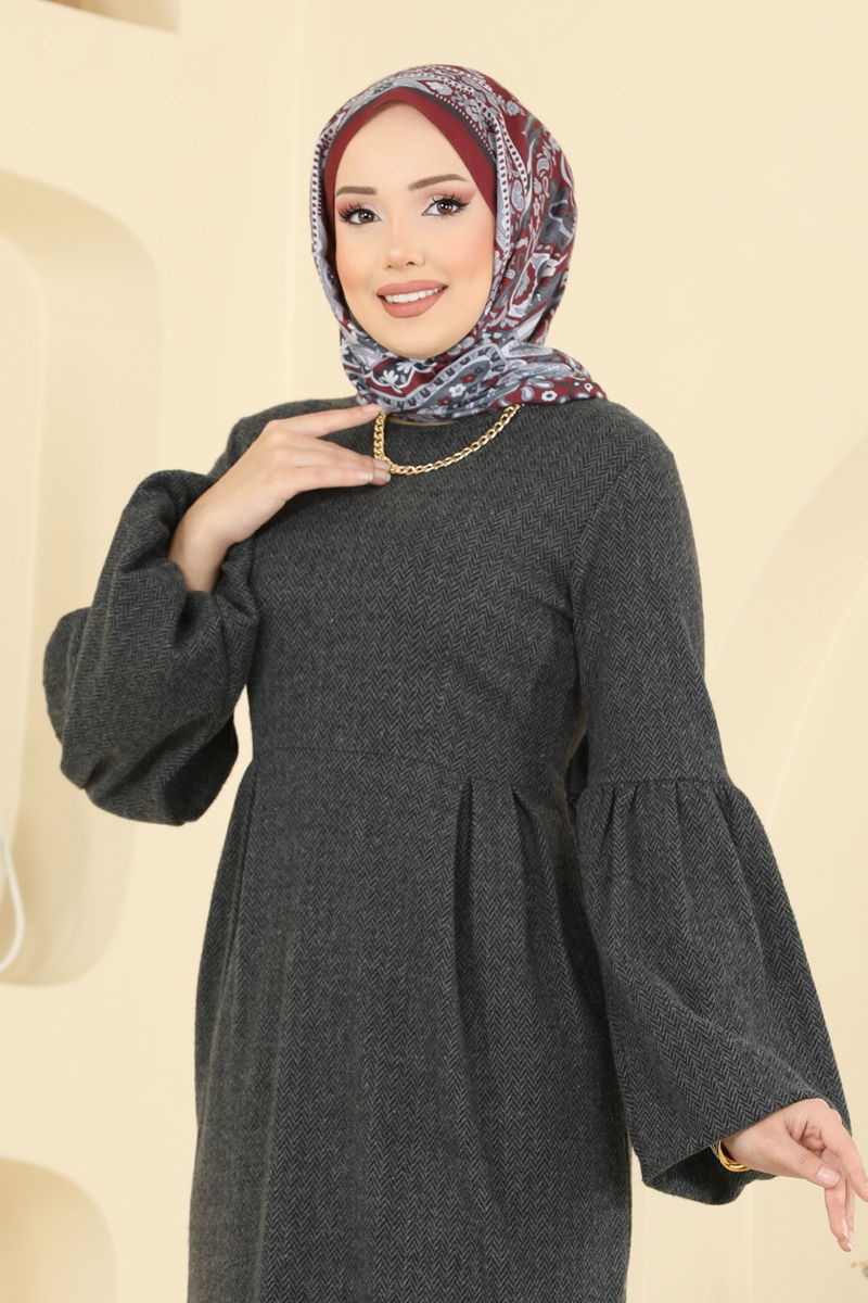 The Seamed Herringbone Dress is a fine choice reflecting the elegant and classic line of modest fashion. Ideal for Autumn and Winter, this dress is made from delicate herringbone fabric. It catches the eye with its modern cut, features a crew neck and is unlined for comfort. It is recommended to be gently washed at 30 degrees. The dress is designed to be slipped over the head and offers a feminine silhouette with its seamed waist design. The displayed model size is 38.