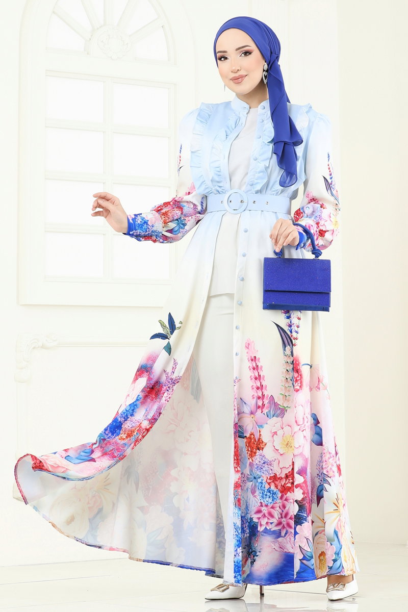 Product Feature :It is a new season hijab style product. (Unlined.)Half stand-up collarIt has a functional buttons.Belt is included, can be used optionally.Active cuff buttonsThere may be a tonal difference in the product color due to the concept shots.