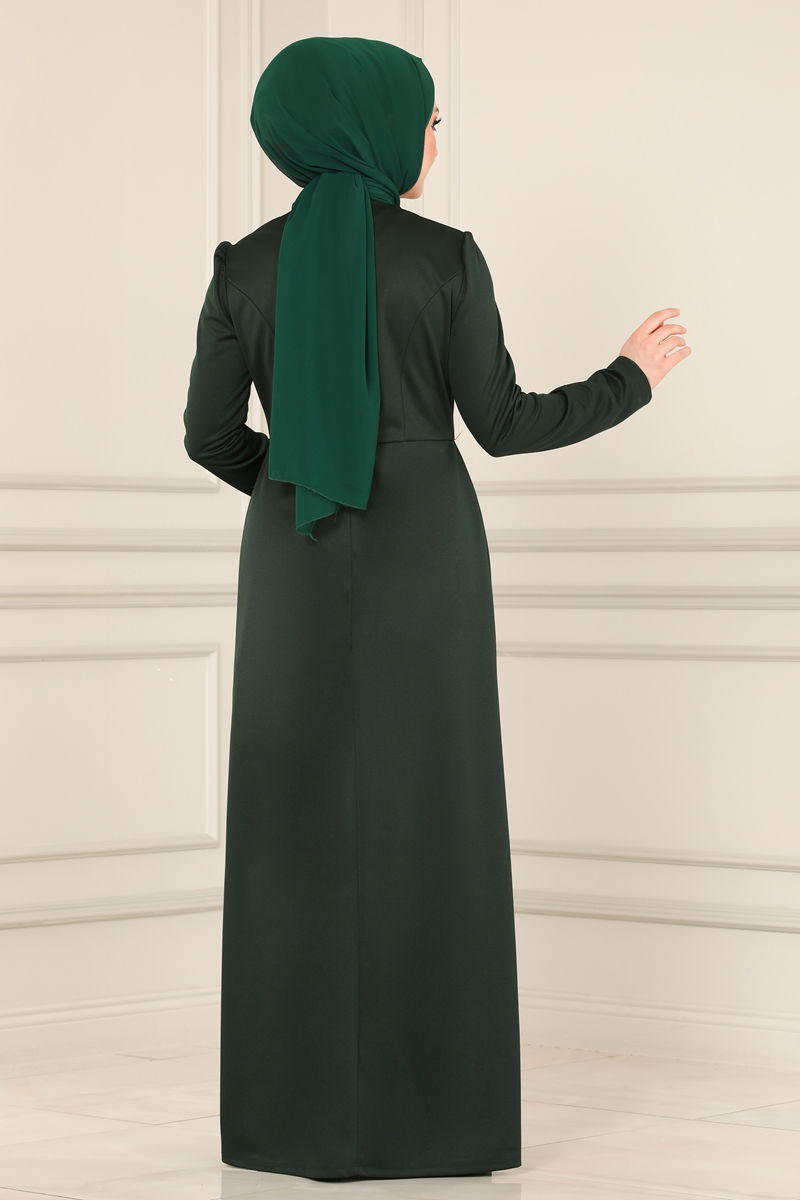 Our Pearl Detail Dress offers elegance and comfort together, making it a perfect choice for all seasons. Crafted from crepe fabric, this modest dress features a crew neck design that lends a contemporary look, while the zipper at the back ensures easy wear. The pearled details, which are affixed with studs, add an extra touch of elegance. The dress is unlined, providing freedom of movement.