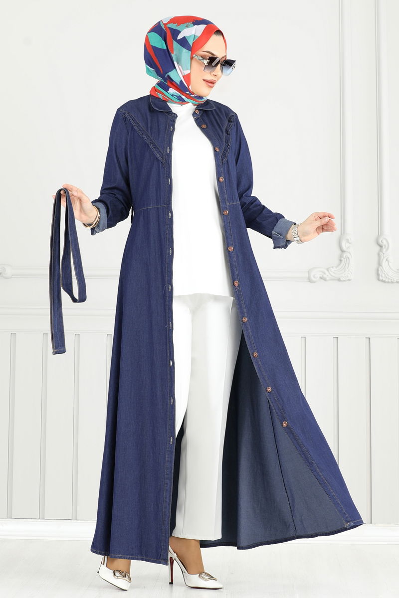 Product Feature : It is a new season hijab fashion product. The product has a Shirt collar. The product has From the front buttons. Unlined. Details are sewn. Belt included, optional not available. Cuff buttons are active. There may be a tonal difference in the product due to concept photo shoots.