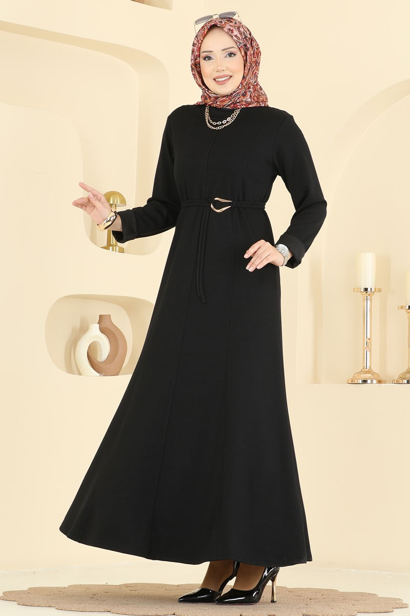 Offering both elegance and comfort, the Belted Modal Dress is a versatile hijab design ideal for all seasons. It can be washed at 30 degrees on a delicate cycle for easy care. This dress features a crew neckline and is unlined for a comfortable fit, while its non-transparent fabric ensures you feel confident all day. The displayed model is in size 38, and the dress is designed to be slipped on over the head. The included drawstrings can be adjusted or removed according to your style preference.
