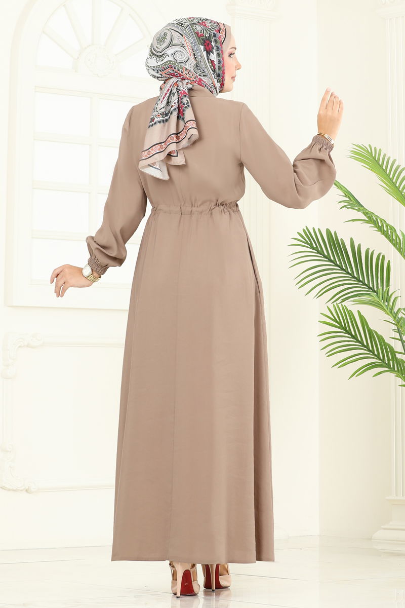 يتميز بخصر ذو أربطة. المنتج لديه ياقة القميص. المنتج به أزرار نصف أمامي. غير مبطنة. المنتج يحتوي على حزام خصر مُخاط. الحزام متضمن، ،يمكن استخدامها حسب الرغبة تفاصيل الجيب من الملحقات. السوار مطاطي. قد يكون هناك اختلاف في الدرجة اللونية في المنتج بسبب التقاط الصور الفوتوغرافية.