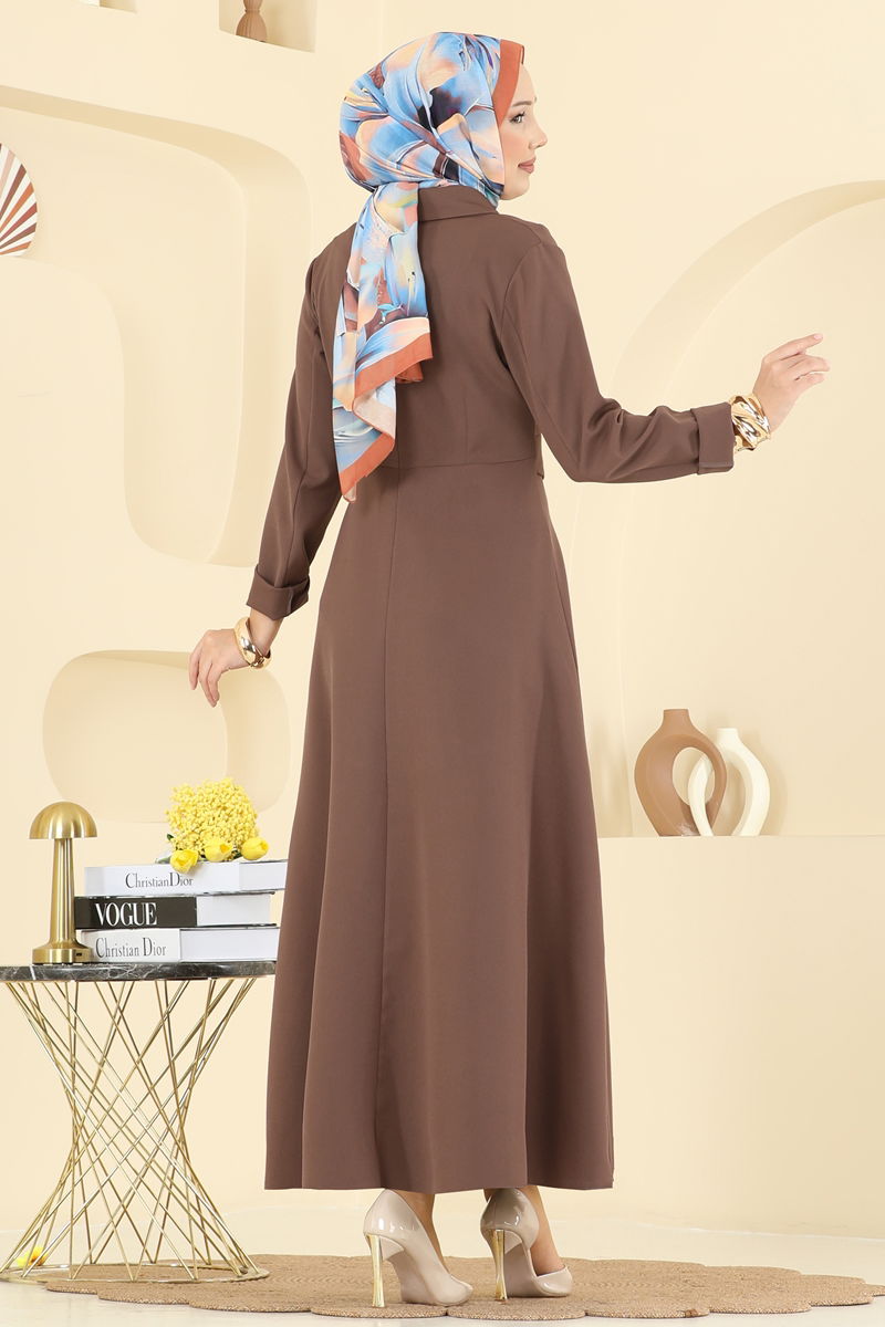 يتم ارتداء المنتج على الرأس. المنتج لديه ياقة مفتوحة. غير مبطن .الداخل غير شفاف. المنتج به سحاب في جزء من الجانب. المنتج يحتوي على حزام خصر مُخاط. الأزرار هي إكسسوارات. قد يكون هناك اختلاف في الدرجة اللونية في المنتج بسبب التقاط الصور الفوتوغرافية.