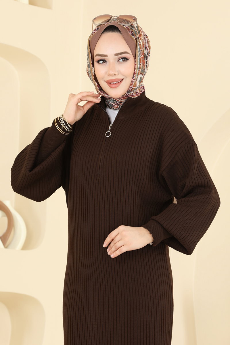 The Half-Zip Detailed Dress is an elegantly designed modest wear perfect for the autumn and winter seasons. It can be washed gently at 30 degrees and offers a light and comfortable experience with its unlined structure. This standard-sized dress fits sizes 36-38-40 perfectly.