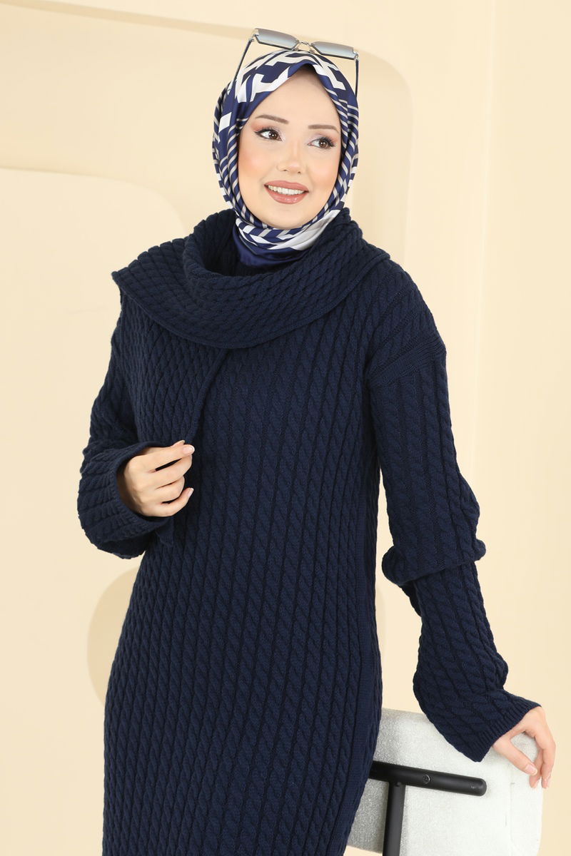Scarf-Detailed Knit Dress is designed to make your autumn and winter stylish and warm. Washable at 30 degrees with delicate care, this knit fabric dress ensures your comfort. It offers a modern look with its crew neck and unlined structure. Available in standard size measurements, it is suitable for various sizes (36-38-40-42-44). It comes with an optional scarf for versatile styling.