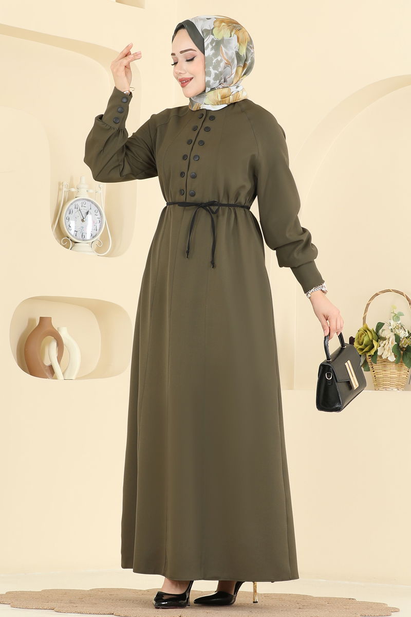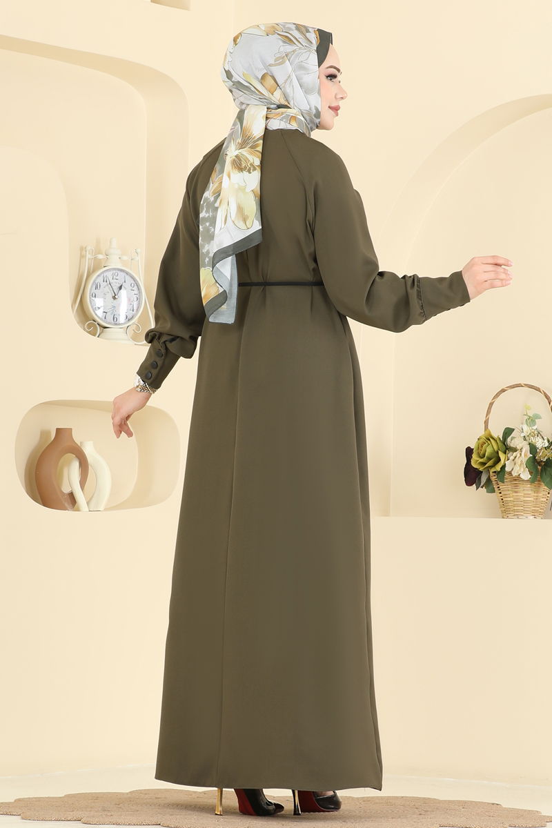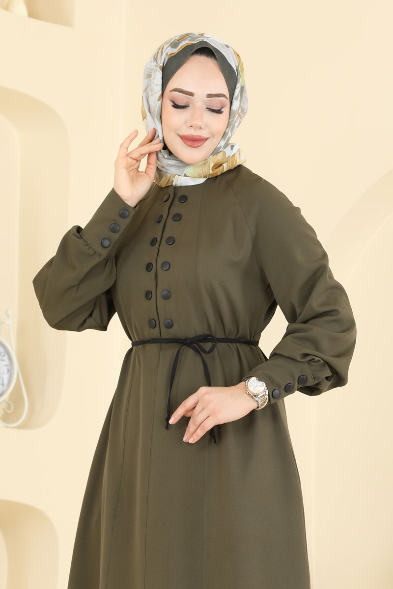 Elegant and functional, the Snap Button Detailed Dress is perfect for any season, adopting modern lines in modest wear. It offers a long life with its 30-degree delicate wash feature. The bicycle neck and unlined structure provide comfort, while the active snap buttons on the cuffs offer practical use. The removable tie detail can be adjusted for different styles as desired. The example with size 38 on the model gives you an idea.