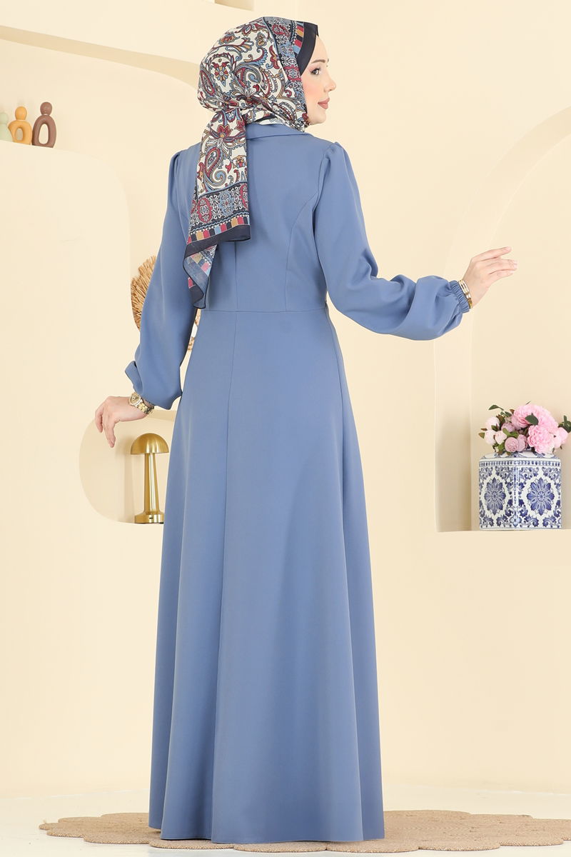 Showcase your elegance throughout all seasons with the Criss-Cross Neck Tie Dress, which blends modest fashion with modern lines. Made from dabıl fabric that requires gentle care, it offers practical use with its washability at 30 degrees. Its cross neck and half-button design provide both comfort and style. This dress, with its elastic cuffs, offers a comfortable fit, while its unlined structure makes it light and breathable.