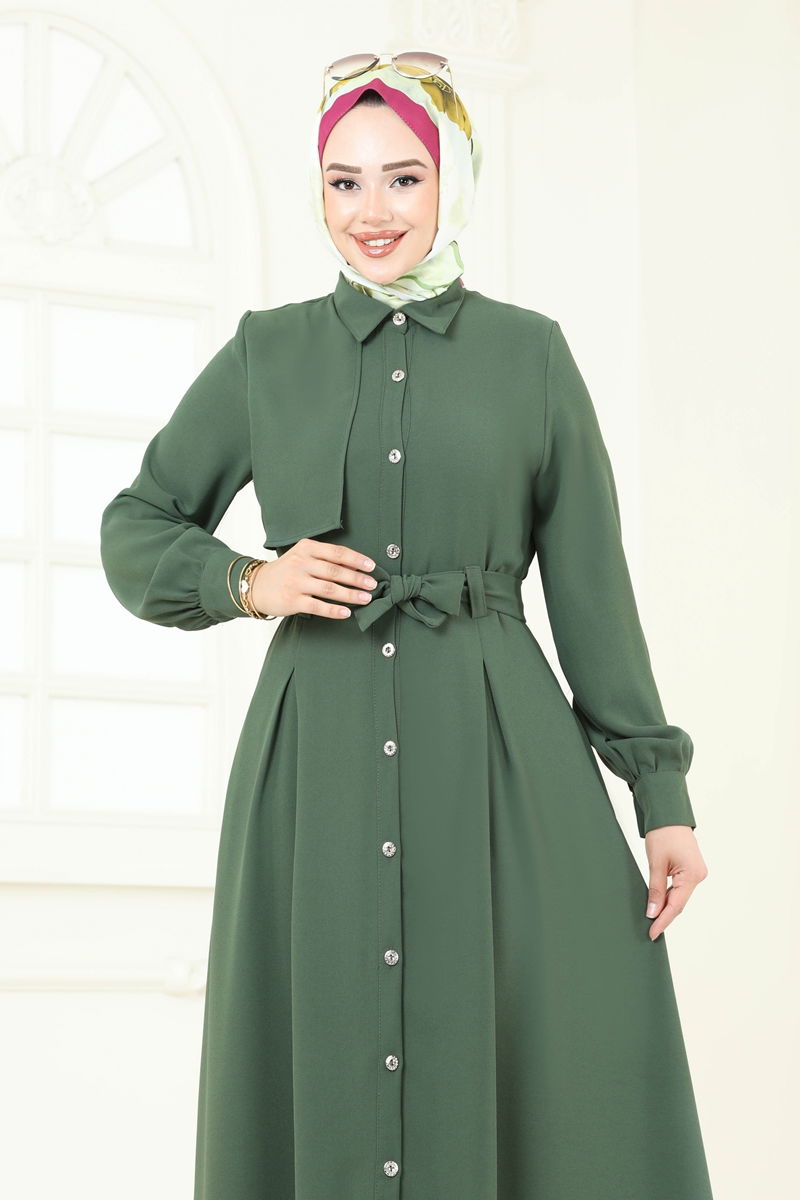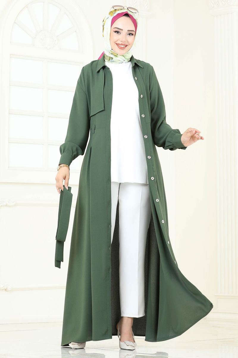 Product Feature : It is a new season hijab fashion product. The product has a Shirt collar. The product has From the front buttons. Unlined. The product has a stitched waistband. Belt included, optional not available. Pocket available. Cuff buttons are active. There may be a tonal difference in the product due to concept photo shoots.